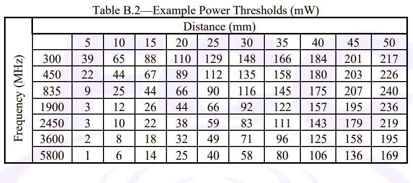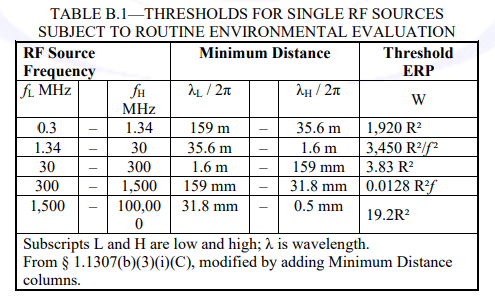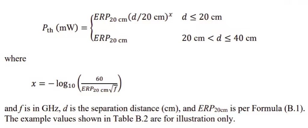 提供基于SAR豁免替代方案——根據(jù)頻率與距離關(guān)系計(jì)算ERP閾值(MPE)
