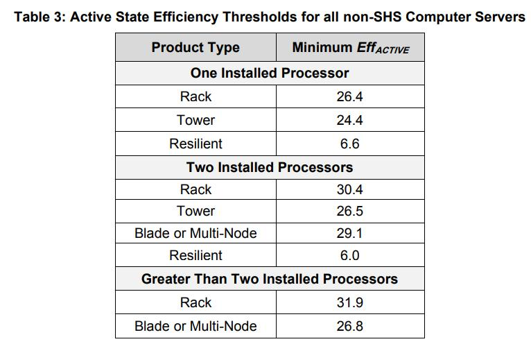 4.0 版本中對于非大容量服務器的活動狀態(tài)效率閾值要求: