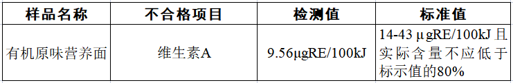 《食品安全國(guó)家標(biāo)準(zhǔn) 嬰幼兒谷類(lèi)輔助食品》(GB 10769—2010)中規(guī)定,嬰幼兒谷類(lèi)輔助食品中維生素A含量應(yīng)在14—43μgRE/100kJ范圍內(nèi),《食品安全國(guó)家標(biāo)準(zhǔn) 預(yù)包裝特殊膳食用食品標(biāo)簽》(GB 13432—2013)中規(guī)定,在產(chǎn)品保質(zhì)期內(nèi),能量和營(yíng)養(yǎng)成分的實(shí)際含量不應(yīng)低于標(biāo)示值的80%。