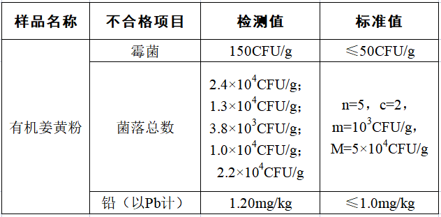 監(jiān)督抽檢不合格食品具體情況: