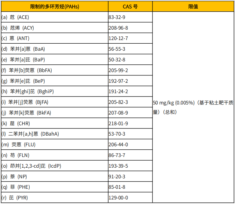 2025年4月2日,歐盟委員會批準(zhǔn)和發(fā)布法規(guī)(EU) 2025/660,在歐盟REACH法規(guī)(EC) No 1907/2006附錄XVII中增加了第50a項,限制射擊用粘土靶中的18項多環(huán)芳烴(PAHs)含量。該修訂將于2025年4月22日生效,并將于2026年4月22日執(zhí)行。