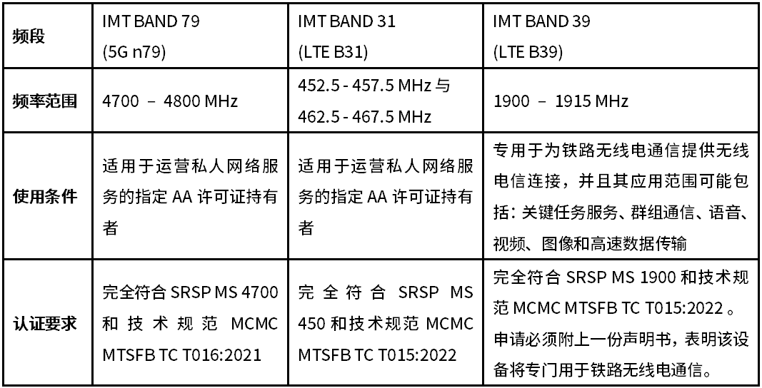 本次修訂的要點是CRC將Band 7 (2500-2570 MHz/ 2620-2690 MHz)和Band 38 (2570-2620 MHz)劃分用于5G NR技術(shù),并規(guī)定了適用的技術(shù)標(biāo)準(zhǔn)。同時,通函要求相關(guān)設(shè)備需符合3GPP及SAR要求。