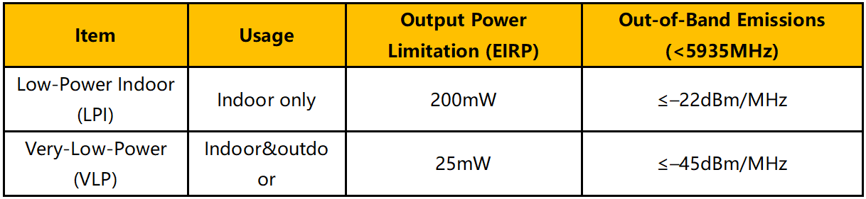 1. 根據(jù)該決議,現(xiàn)5945–6425 MHz頻段已經(jīng)正式開放,附帶以下使用條件: