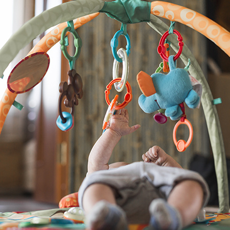 放置在小孩上方的玩具