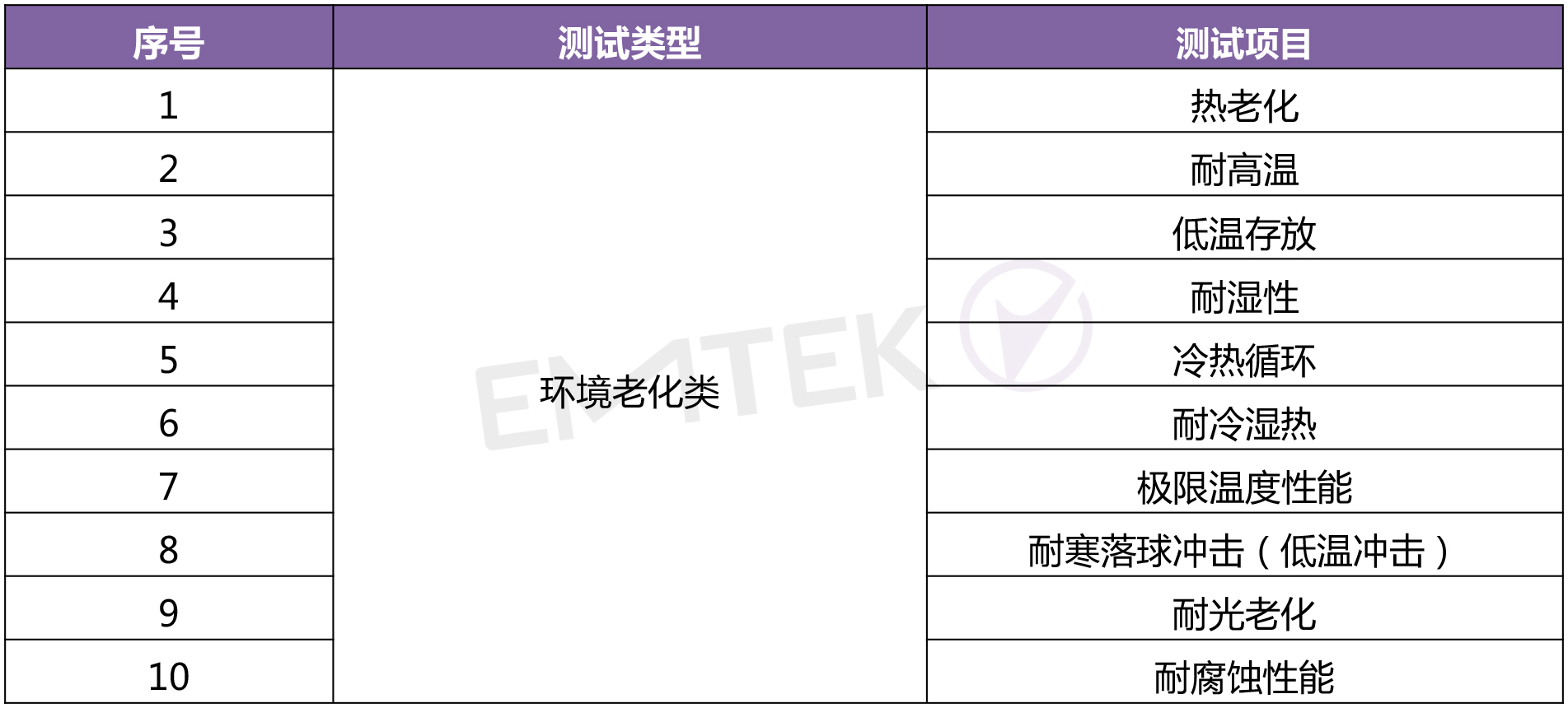 是將產(chǎn)品暴露在自然的或人工的環(huán)境條件下經(jīng)受其作用,以評(píng)價(jià)產(chǎn)品在實(shí)際使用、運(yùn)輸和貯存的環(huán)境條件下的性能,并分析研究環(huán)境因素的影響程度,包含的環(huán)境試驗(yàn)如熱老化、低溫存放、冷熱循環(huán)、低溫沖擊、耐光老化等;