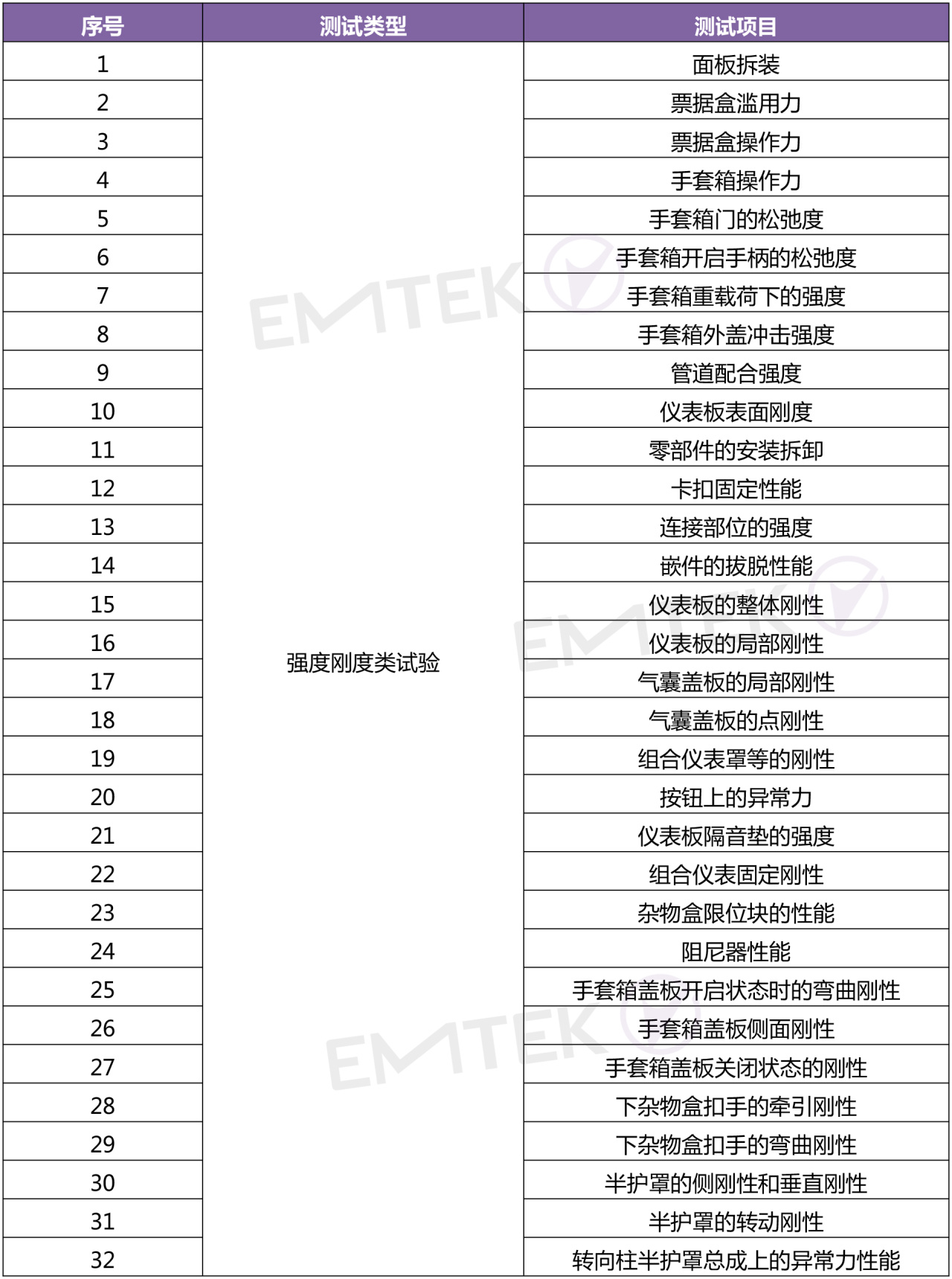 考核儀表板使用過程中承受的強度和剛性、操作功能特性及耐久、振動試驗、碰撞試驗,比如票據(jù)盒循環(huán)耐久、手套箱操作耐久、儀表板整體剛度、局部剛性/點剛性、手套箱門剛度、振動特性、振動耐久、模態(tài)、靜態(tài)頭碰/膝碰、乘員側(cè)氣囊爆破等;