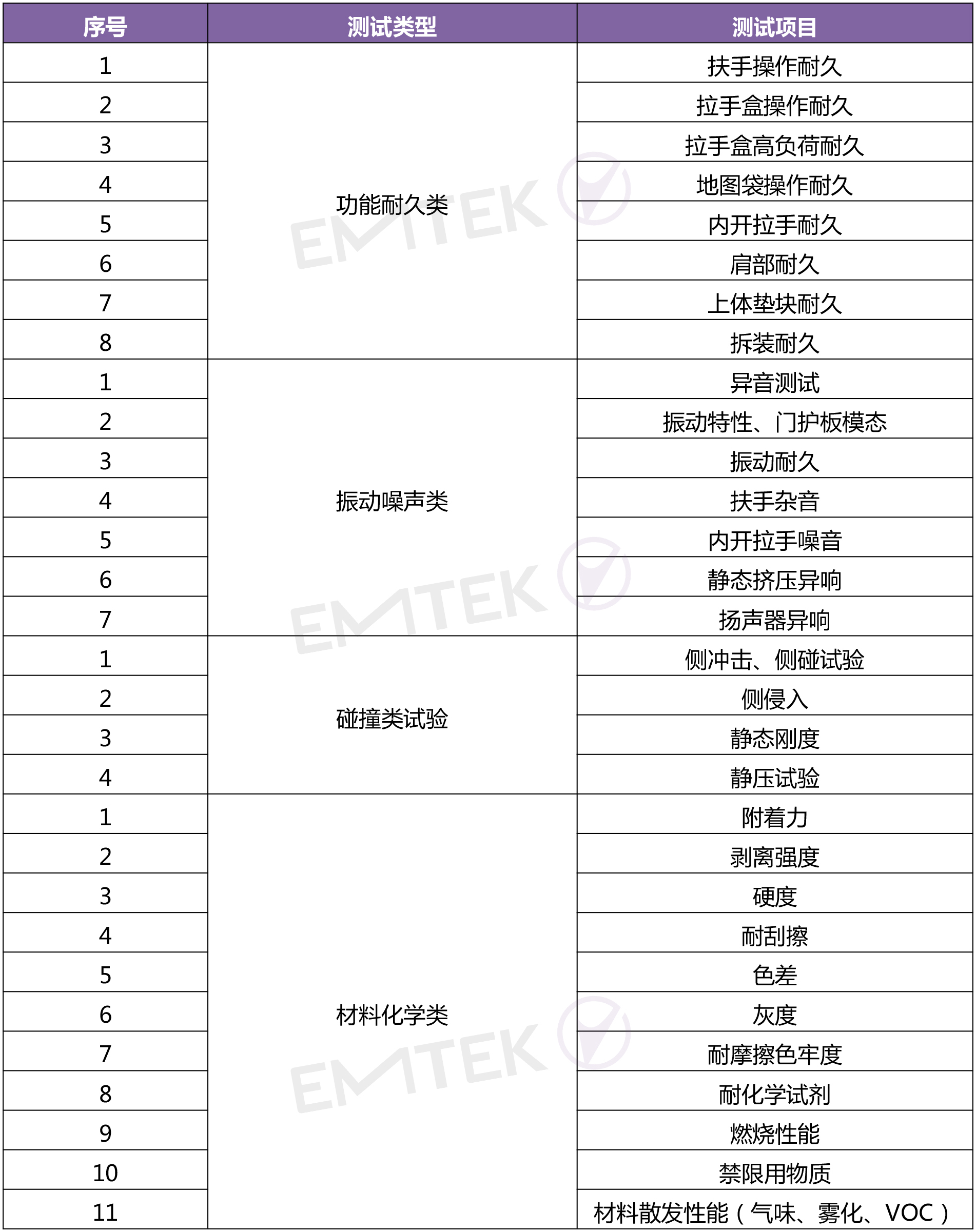 考核門板使用過程中承受的強(qiáng)度和剛性、操作功能特性及耐久、振動(dòng)試驗(yàn)、碰撞試驗(yàn)(零件在突發(fā)事故中對(duì)乘員保護(hù)的能力),比如內(nèi)開拉手耐久、拉手盒耐久、地圖袋強(qiáng)度、扶手強(qiáng)度、拉手盒強(qiáng)度、振動(dòng)特性、振動(dòng)耐久、側(cè)沖擊、側(cè)侵入等;