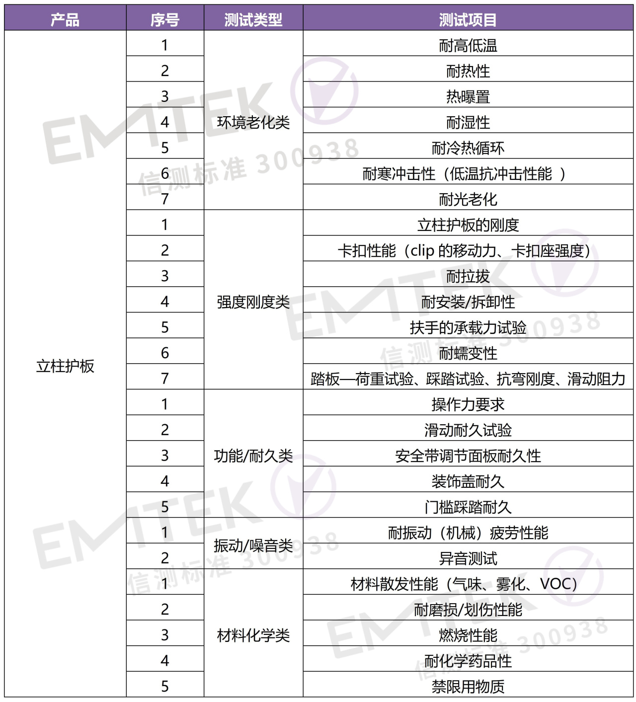 考核產品使用過程中承受的強度和剛性、操作功能特性及耐久、振動試驗等,比如立柱護板的剛度、卡扣性能、安裝/拆卸性能、安全帶調節(jié)面板操作性能、安全帶調節(jié)面板耐久性、裝飾蓋耐久、振動耐久、振動噪音等;