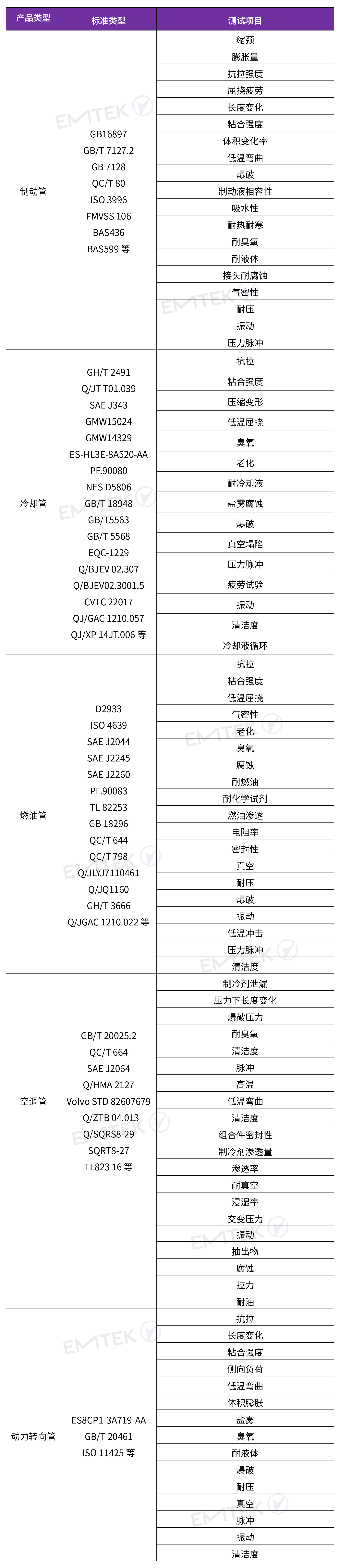 制動管:液壓制動硬(軟)管、氣壓制動硬(軟)管、真空管等。