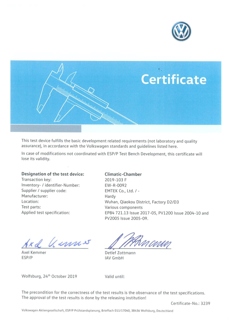 大眾認(rèn)可證書(shū)-氣候測(cè)試系統(tǒng)