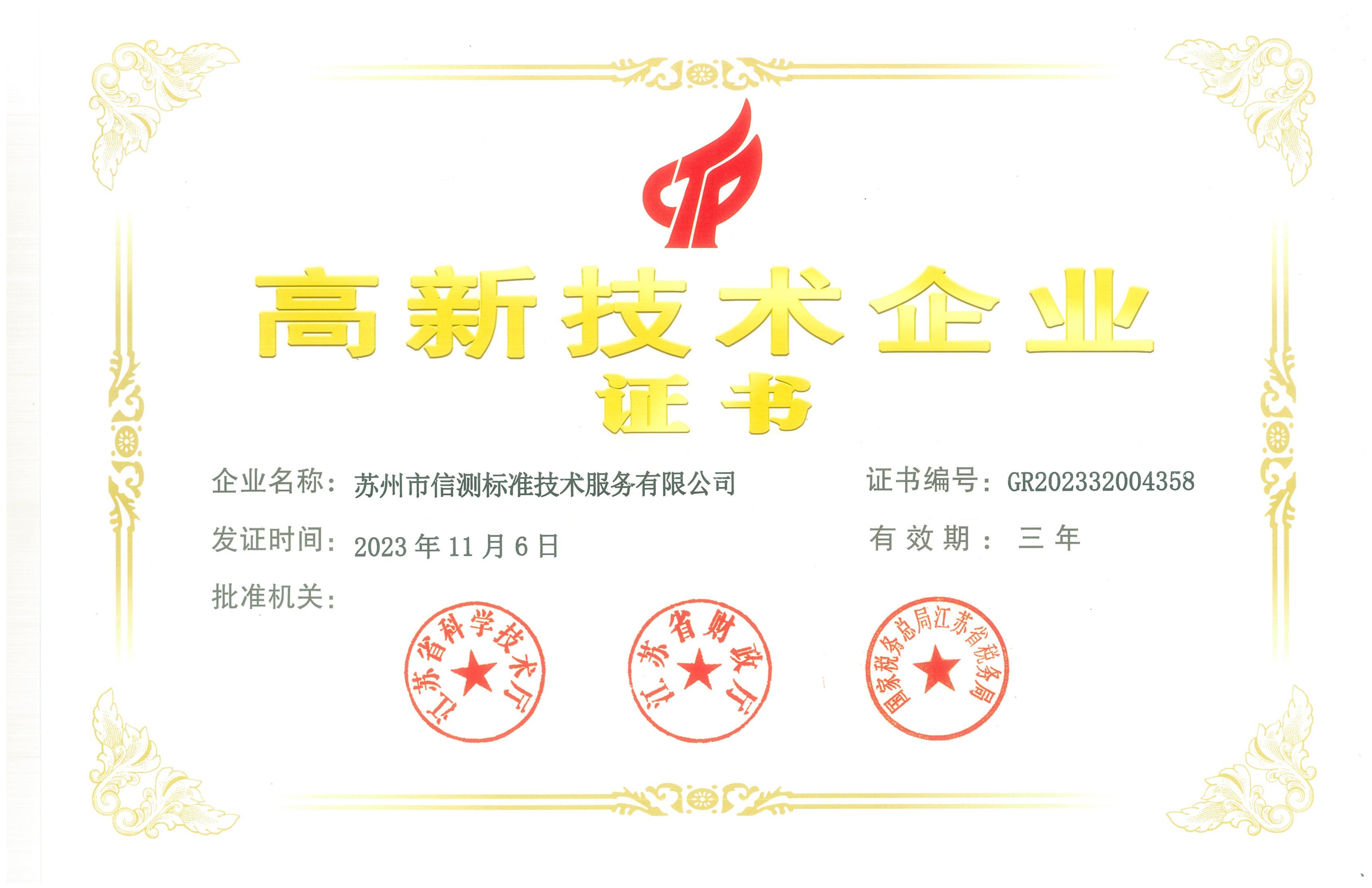 科技賦能,創(chuàng)新發(fā)展。此次“高新技術(shù)企業(yè)”的再次認定,充分體現(xiàn)了蘇州信測在技術(shù)實力、自主知識產(chǎn)權(quán)、服務(wù)管理水平以及企業(yè)成長性等方面取得的進步與發(fā)展得到了國家主管部門的權(quán)威肯定和認可。