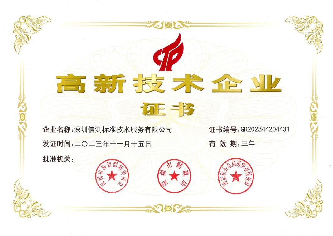 此次榮獲“高新技術(shù)企業(yè)”認(rèn)定,是對(duì)我司綜合技術(shù)實(shí)力的權(quán)威認(rèn)證,也是對(duì)信測(cè)標(biāo)準(zhǔn)深圳寶安檢測(cè)基地未來(lái)發(fā)展的鼓勵(lì)和鞭策。