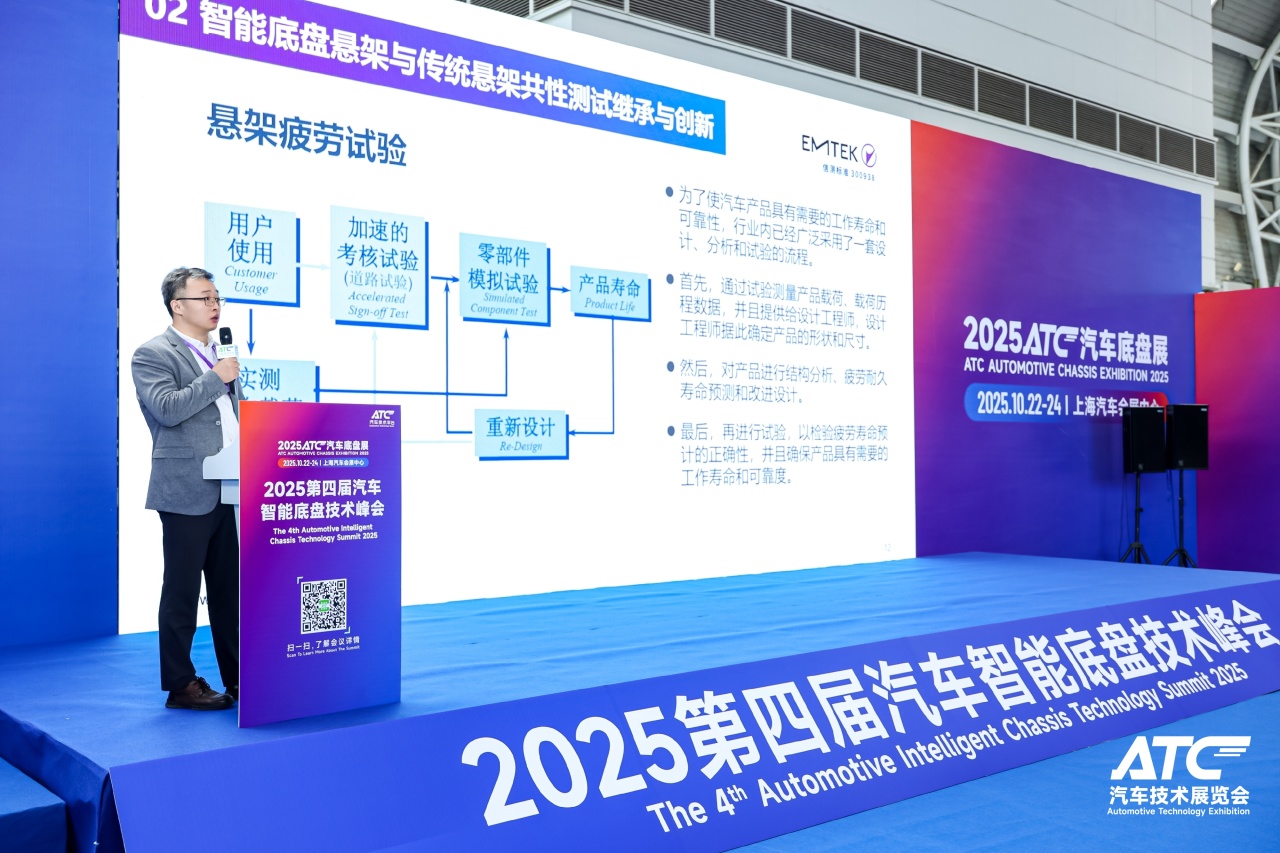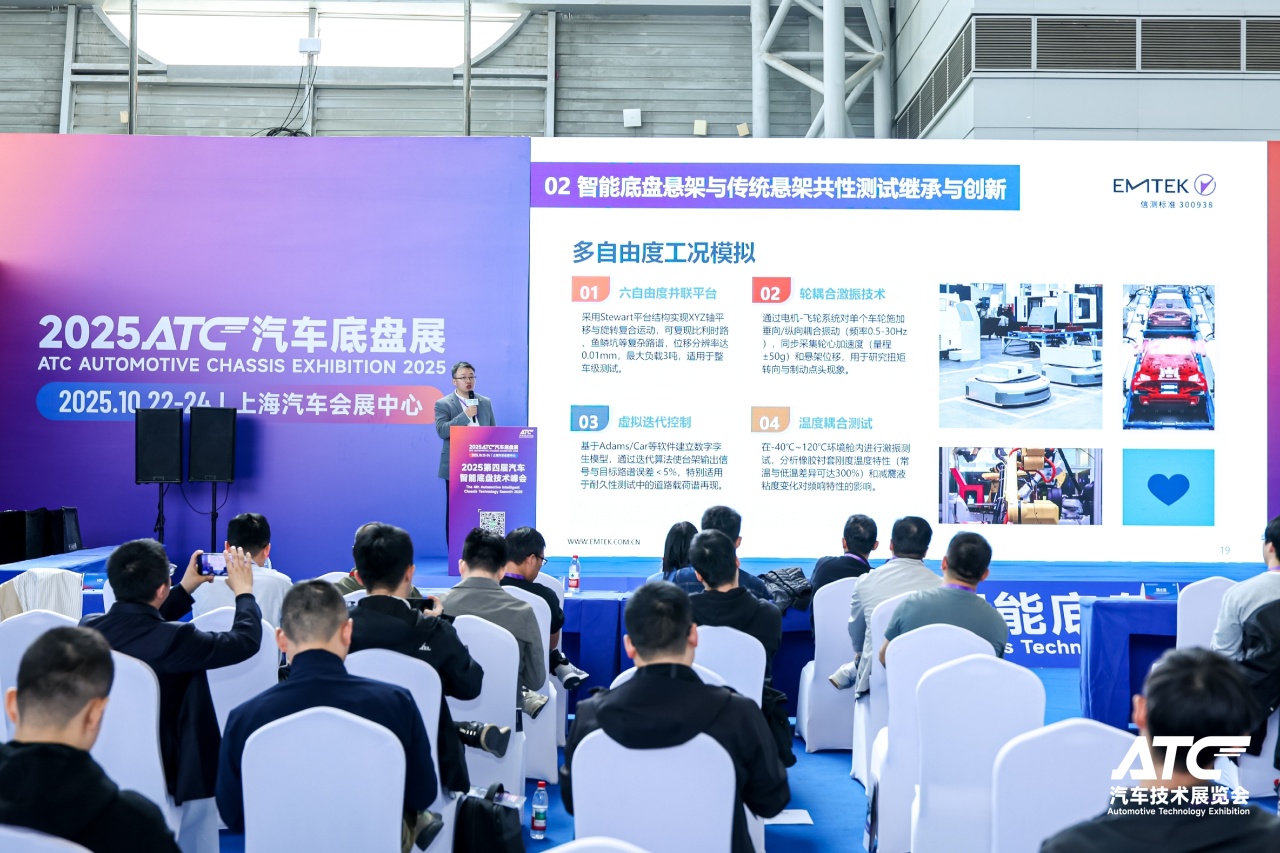 10月22日-24日,2025上海汽車底盤(pán)系統(tǒng)技術(shù)展覽會(huì)(ATC汽車底盤(pán)展)在上海汽車會(huì)展中心(嘉定)盛大開(kāi)幕。本屆展會(huì)規(guī)模達(dá)28,000平方米,吸引了全產(chǎn)業(yè)鏈400余家展商及品牌參展,并同期舉辦10+場(chǎng)技術(shù)峰會(huì)與采購(gòu)配對(duì)會(huì)等活動(dòng)。EMTEK信測(cè)標(biāo)準(zhǔn)精彩亮相展會(huì),圍繞汽車智能底盤(pán)檢測(cè)技術(shù)方案,鏈接產(chǎn)業(yè)資源,助力行業(yè)安全合規(guī)與技術(shù)創(chuàng)新,并以《汽車智能底盤(pán)懸架測(cè)試研究》為主題參與2025第四屆汽車智能底盤(pán)技術(shù)峰會(huì)熱點(diǎn)演講,與海內(nèi)外行業(yè)專家和現(xiàn)場(chǎng)觀眾進(jìn)行了深度分享交流。