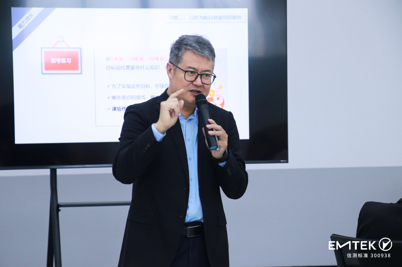 本次項(xiàng)目還特別邀請(qǐng)了外部資深講師雷志強(qiáng)先生。雷老師通過生動(dòng)有趣的講解,向?qū)W員們教授了由內(nèi)到外,由個(gè)人成長(zhǎng)到人際效能和高效團(tuán)隊(duì)協(xié)同的系統(tǒng)成長(zhǎng)框架和實(shí)用方法,幫助學(xué)員們樹立積極職場(chǎng)心態(tài)、明確實(shí)現(xiàn)目標(biāo)的方向與方法及提升工作效率的路徑。