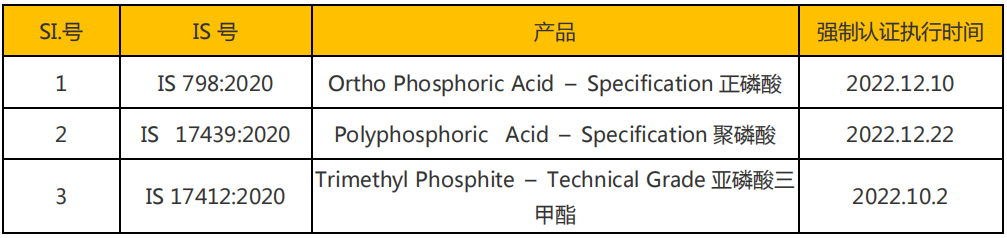 2022 年 8 月,印度化學(xué)品與肥料部近期發(fā)布了多個化學(xué)品 BIS 強制認(rèn)證延期公告,涉及吡啶、丙酮、碳酸鉀、過氧化氫、聚氨酯等化學(xué)品,延期主要受疫情影響。