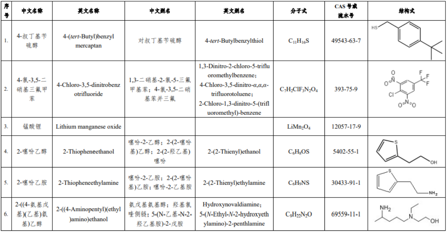 6 種化學(xué)物質(zhì)擬增補列入《中國現(xiàn)有化學(xué)物質(zhì)名錄》
