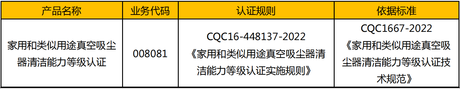 中國質(zhì)量認(rèn)證中心發(fā)布關(guān)于開通家用和類似用途真空吸塵器清潔能力等級認(rèn)證業(yè)務(wù)的通知