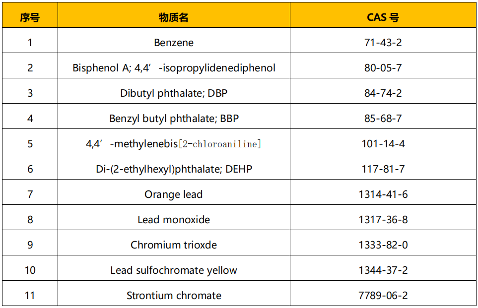 限制銷(xiāo)售濃度大于等于10 ppm(0.001%,質(zhì)量比)的混合物和制品。