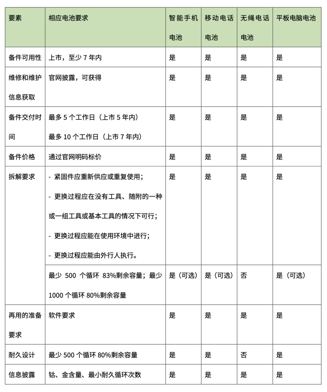 歐盟委員會生態(tài)設計法規(guī)(EU) 2023/1670 專注于具體產品生態(tài)設計,可以追溯至 ERP 指令2009/125/EC,以及更早期的 EUP 指令 2005/32/EC。最新法規(guī)(EU) 2023/1670 不僅對終端產品各個方面進行了規(guī)范,還對關鍵元器件,尤其是電池,進行了詳盡的規(guī)范。