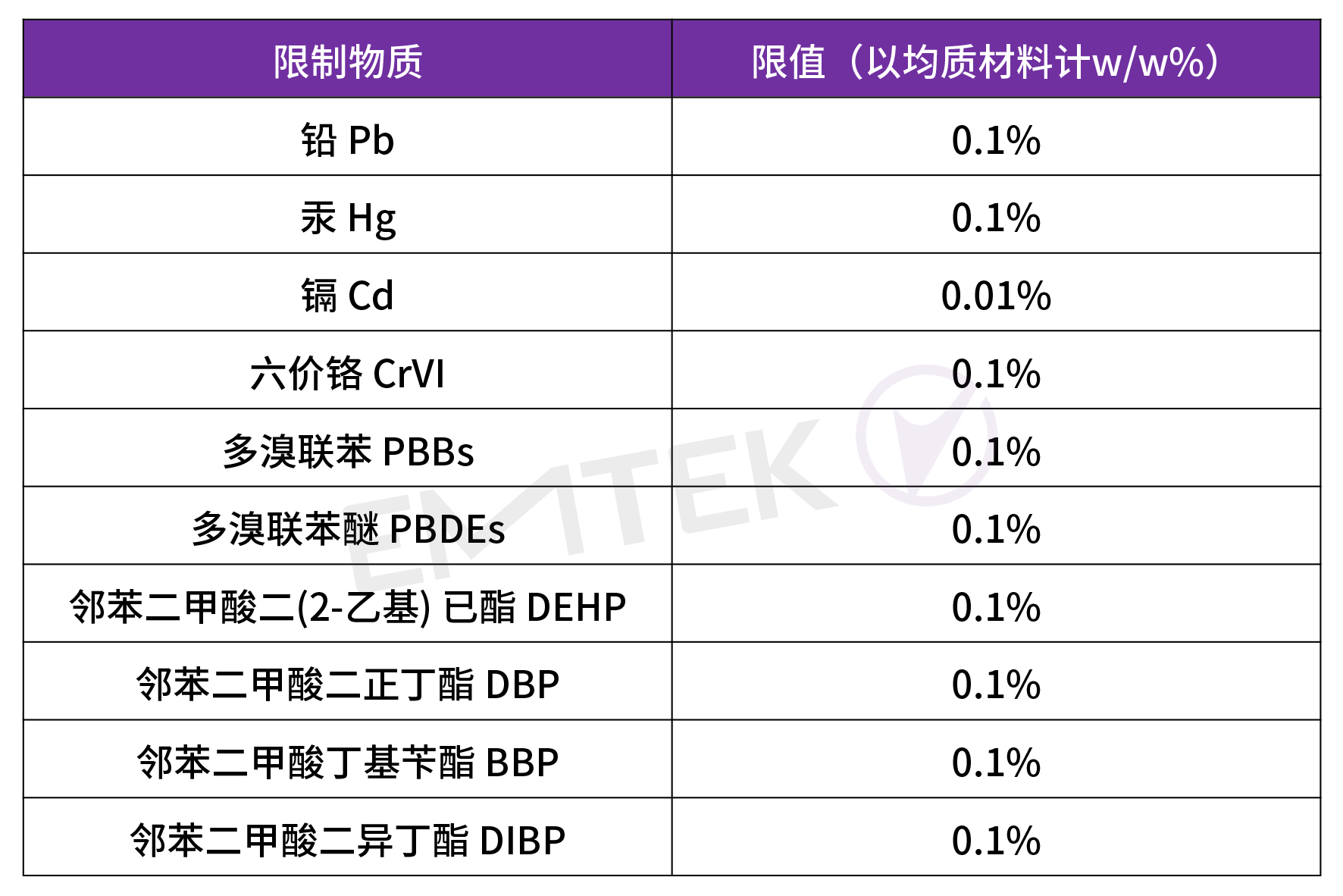 將鄰苯二甲酸二正丁酯(DBP)、鄰苯二甲酸二異丁酯(DIBP)、鄰苯二甲酸丁基芐酯(BBP)和鄰苯二甲酸二(2-乙基)己酯(DEHP)四項(xiàng)鄰苯二甲酸酯類(lèi)物質(zhì)納入標(biāo)準(zhǔn)的適用范圍,對(duì)這些限用物質(zhì)進(jìn)行管控,至此,中國(guó)RoHS將管控10項(xiàng)物質(zhì),與歐盟一致;