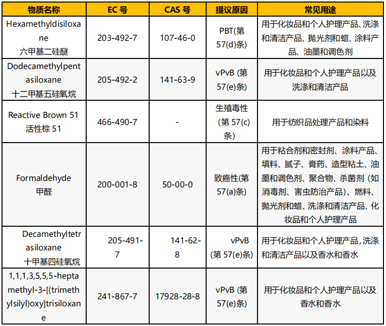 ECHA 在對 SVHC 清單更新的同時,也更新了 SVHC 意向清單。